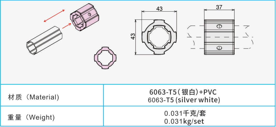 材質:6063-T5(銀白)+PVC