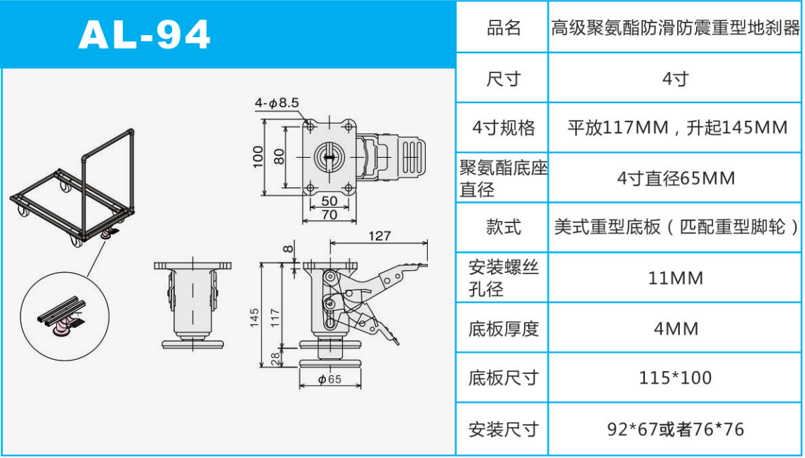 品名:高級(jí)聚氨酯防滑防震重型地剎器